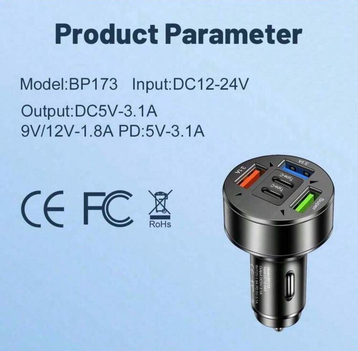 100W 3USB 2Type-C Car Charger Fast Charging PD QC3.0 USB C Car Phone Charger Type C Adapter In Car Compatible With Iphone